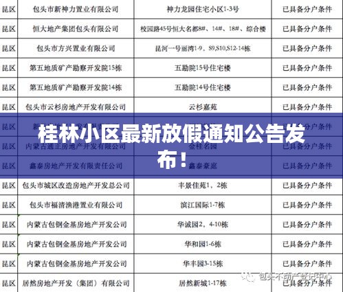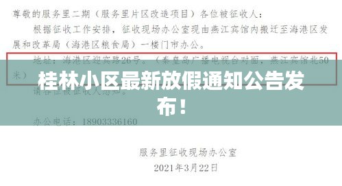 大家好!为了大家能够及时了解最新的放假安排,现将桂林小区最新的放假通知公告如下,请各位业主、住户予以关注并遵守。