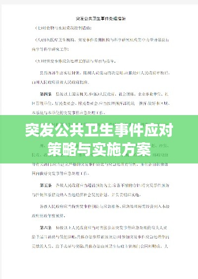 随着全球化的快速发展,人口流动日益频繁,突发公共卫生事件频发,给人们的生命安全和身体健康带来严重威胁,制定一套科学、高效、实用的突发公共卫生事件应对方案显得尤为重要,本文将详细介绍突发公共卫生事件的背景、意义、特点、应对措施以及预防措施,为公众提供必要的了解和应对策略。