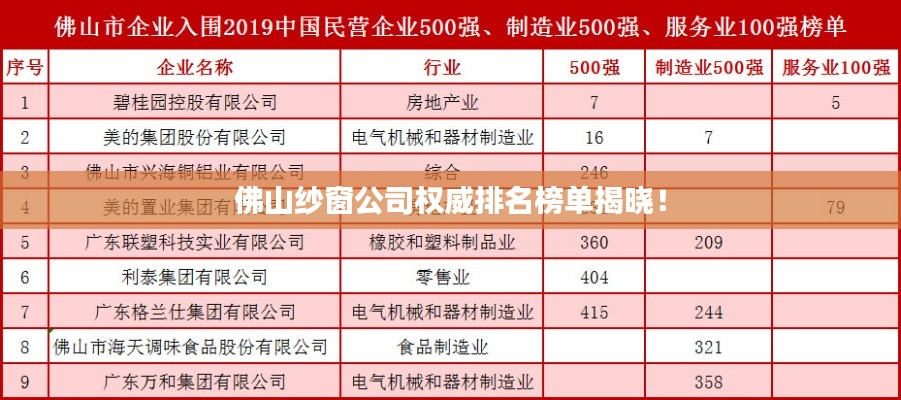 随着现代建筑行业的快速发展,纱窗作为重要的窗户配件,在佛山地区得到了广泛的应用,众多纱窗公司纷纷涌现,为消费者提供各式各样的纱窗产品和服务,本文将介绍佛山纱窗公司的排名,以帮助消费者更好地了解并选择优质的服务商。