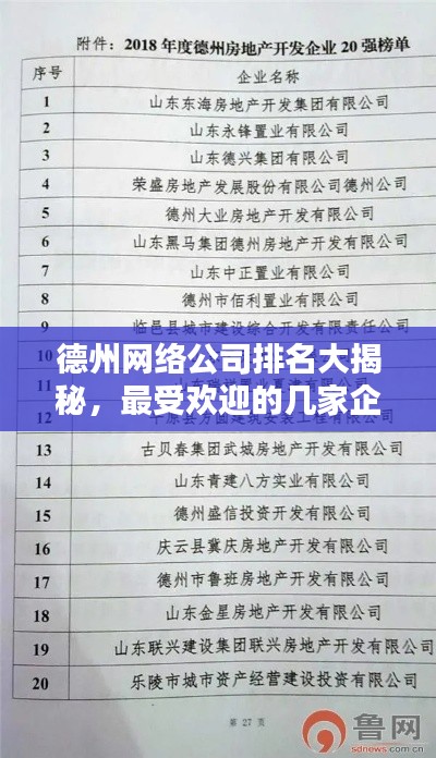 就是德州最好的网络公司排名,这些公司在互联网领域具有较高的影响力和竞争力,为德州乃至全国的互联网产业发展做出了重要贡献,随着互联网技术的不断发展,德州的网络公司也在不断创新和进步,未来将有更多的优秀企业涌现。