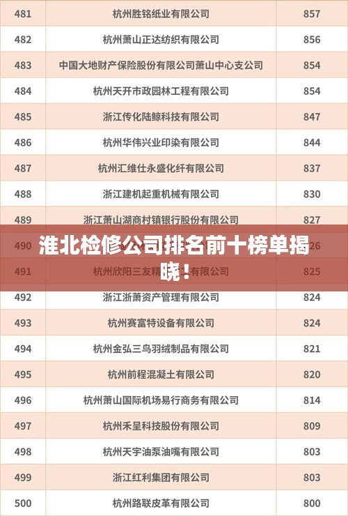 随着工业化的快速发展,检修行业逐渐崭露头角,成为保障各类设备正常运行的重要力量,在淮北地区,众多检修公司凭借优质的服务和专业的技术实力赢得了市场的认可,本文将对淮北地区排名前十的检修公司进行详细介绍。