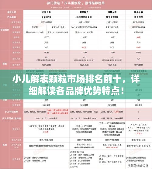 随着家长们对孩子健康的关注度不断提高,小儿药品市场日益繁荣,小儿解表颗粒因其独特的疗效及广泛的应用受到许多家长的青睐,本文将为您介绍小儿解表颗粒排名前十名的相关信息。