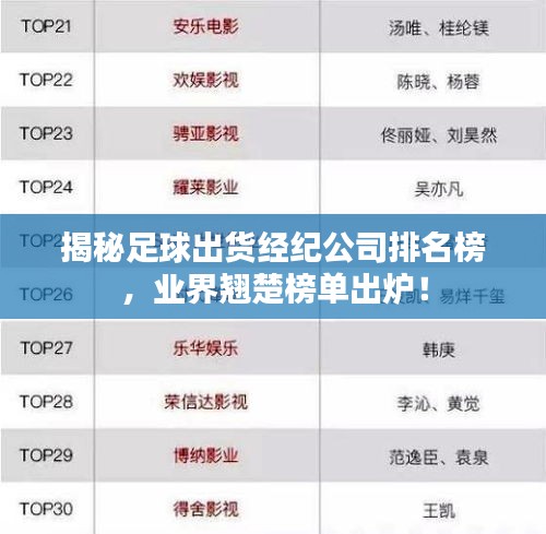 在足球产业的繁荣发展中,足球出货经纪公司扮演着举足轻重的角色,这些公司不仅为球迷提供观赏赛事的机会,还通过组织球员转会、策划足球活动等方式推动足球产业的持续发展,本文将为您揭示足球出货经纪公司的排名,带您了解这些公司的实力与影响力。