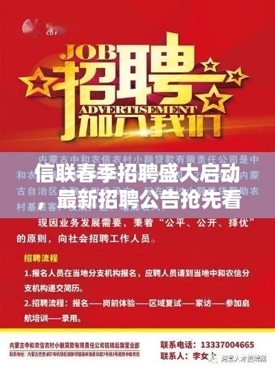 随着春季的到来,各行各业的企业纷纷展开人才招聘的大幕,信联公司也紧跟时代步伐,发布了最新的春季招聘公告,为广大求职者提供了众多优质的职位和广阔的发展机会。