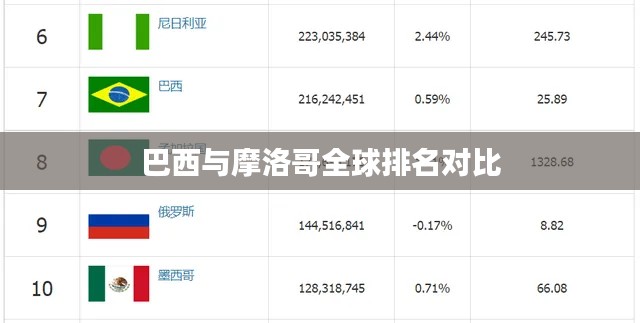 巴西和摩洛哥是两个拥有丰富文化和历史背景的国家,各自在全球舞台上扮演着独特的角色,关于这两个国家的全球排名,我们可以从多个角度进行探讨,包括经济实力、国际影响力、教育水平等各个方面,我们将深入探讨这两个国家在全球的排名情况。