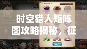时空猎人的最新矩阵图攻略是玩家们提升实力、征服未知领域的关键所在,通过熟悉攻略内容,结合自身实际情况进行实践和调整,相信玩家们能够在游戏中取得更好的成绩,希望本文的攻略能对广大时空猎人玩家有所帮助。