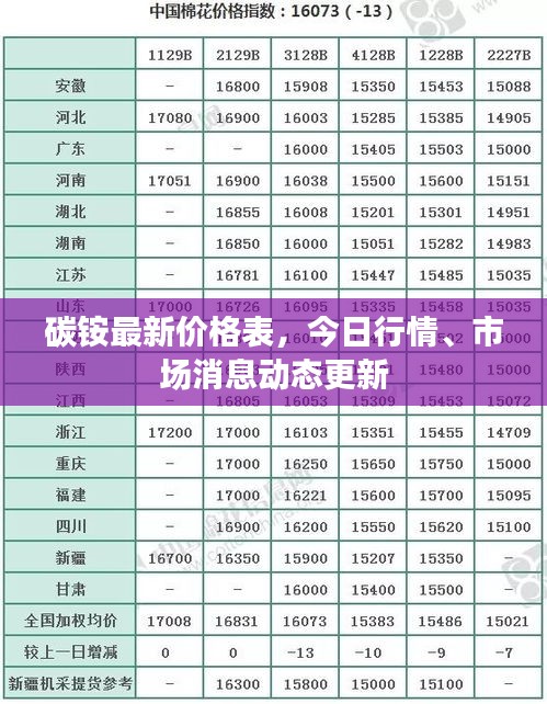 随着全球经济的不断发展和资源需求的日益增长,各类原材料的价格波动成为公众关注的焦点,本文将就碳铵的今日价格表及最新消息进行详细介绍,以飨广大读者。