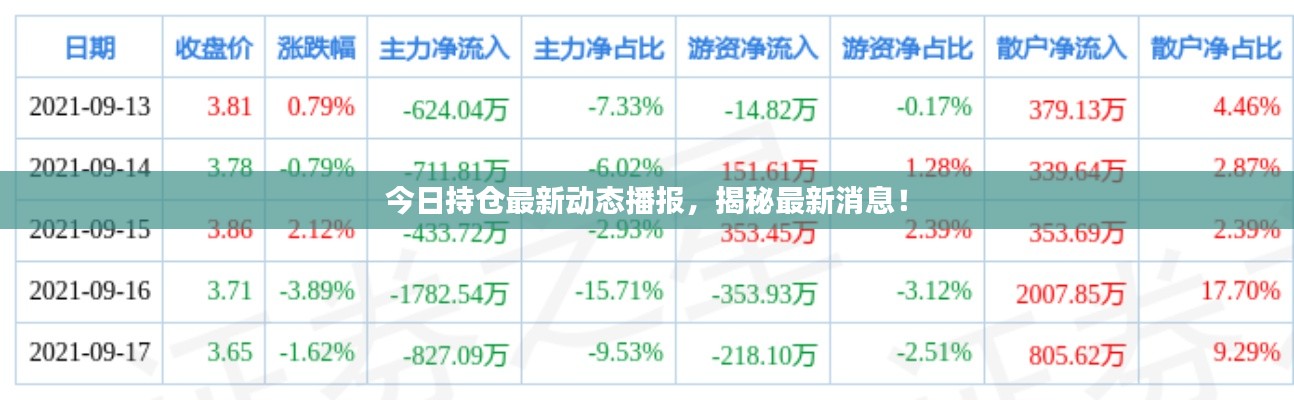 随着金融市场的不断发展和创新,投资者对于实时资讯的需求愈发强烈,本文将为大家带来最新的“今日持仓播报”,帮助投资者把握市场动态,制定投资策略。