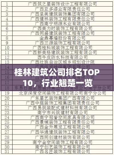 桂林,这座美丽的城市,以其独特的山水景色和繁荣的经济发展吸引了众多建筑公司的目光,在众多建筑公司中,有一些公司凭借其卓越的表现和专业能力脱颖而出,成为了桂林建筑公司的佼佼者,我们将为您介绍桂林建筑公司排名前十名。