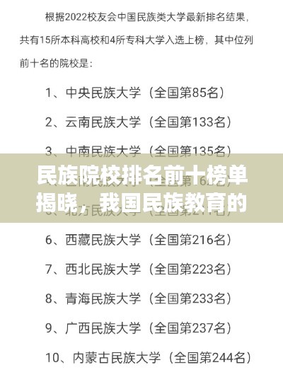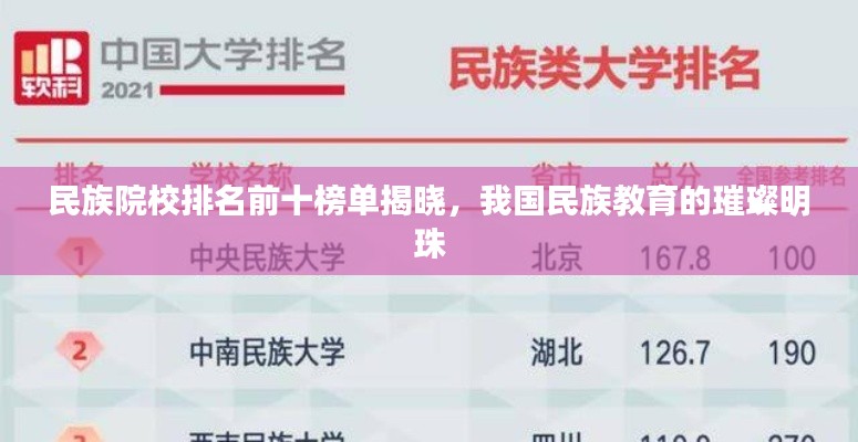 随着我国教育的快速发展,民族院校作为推动民族团结进步和多元文化交融的重要载体,日益受到社会各界的关注,本文将为您揭晓我国民族院校排名前十名,带您走进这些孕育民族精英的摇篮,了解我国民族教育的卓越学府。
