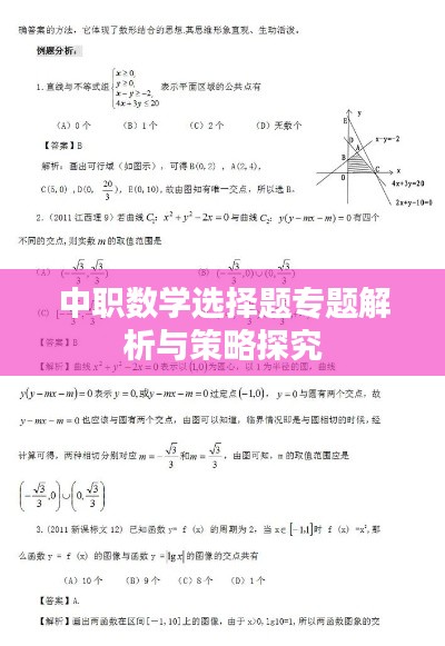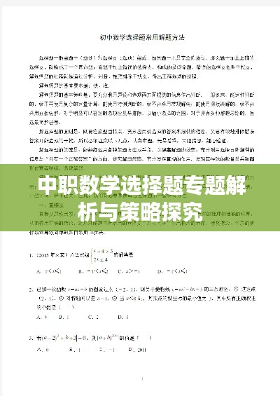 数学作为中职教育的重要科目,对学生未来的职业发展具有深远影响,选择题作为数学考试的主要题型之一,其设计精巧,考查知识点广泛,是评估学生数学能力的重要手段,对中职数学选择题进行专题研究,对于提高数学教学效率,提升学生数学能力具有重要意义。