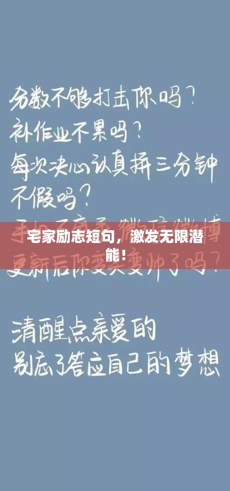 宅家并不是停滞不前的借口,而是我们成长和进步的机会,在宅家的日子里,我们要保持积极向上的心态,激发自己的斗志,勇敢追求梦想,让我们一起铭记这些宅家励志语录短句,让它们成为我们前进的动力和信念的支撑,相信自己,相信未来,让我们一起努力,成就更好的自己。