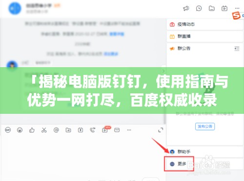 随着科技的不断发展,远程办公已经成为越来越多人的工作选择,在这样的背景下,一款高效、便捷的办公工具显得尤为重要,而电脑版钉钉就是其中的佼佼者之一,如何通过百度搜索并使用电脑版钉钉呢?就让我们一起探讨一下。