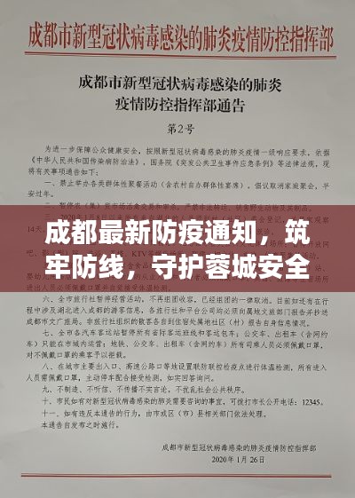 随着疫情防控形势的不断变化,成都市防疫工作再次迎来新的挑战,为了保障广大市民的身体健康和生命安全,成都市疫情防控指挥部发布了最新的防疫通知,本文将为您详细介绍成都今日的最新防疫通知内容,共同筑牢防线,守护蓉城安全。