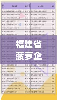 菠萝产业在中国各地蓬勃发展,福建省也不例外,随着菠萝种植技术的不断提升和市场的需求增长,福建省的菠萝企业日益壮大,本文将介绍福建省菠萝企业中排名前十名的企业,这些企业在菠萝种植、加工、销售等方面均取得了显著的成绩。