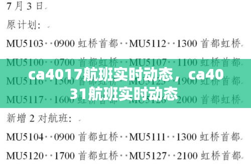 CA4017航班,由中国南方航空公司执飞,是连接北京首都国际机场与广州白云国际机场的重要航线。该航班通常在每天上午10:30从北京起飞,预计飞行时间为2小时15分钟,于下午12:45抵达广州。以下是对CA4017航班的实时动态的详细报道。