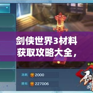 随着剑侠世界3的火爆上线,众多玩家纷纷投入这个充满武侠氛围的游戏世界,在游戏中,材料的获取对于玩家来说至关重要,不仅关乎装备升级,还影响游戏体验,本文将为大家带来剑侠世界3材料攻略最新指南,帮助玩家更好地获取所需材料,提升游戏实力。