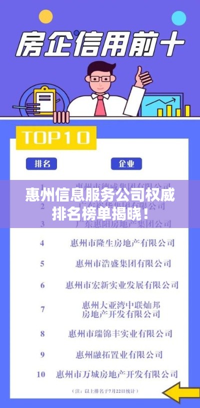 随着信息技术的快速发展,信息服务行业已经成为当今社会的热门行业之一,惠州市作为广东省的重要城市,其信息服务行业也得到了长足的发展,本文将介绍惠州信息服务公司的排名榜,以便更好地了解该行业的发展状况。