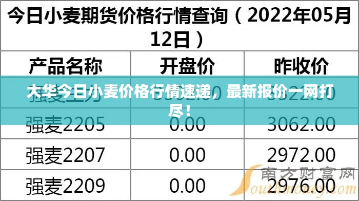 随着全球经济的复苏和农业发展的稳步前行,小麦作为重要的粮食作物,其价格行情一直备受关注,本文将围绕“大华今日小麦最新价格行情”这一主题,为您深入解析当前小麦市场的最新动态。