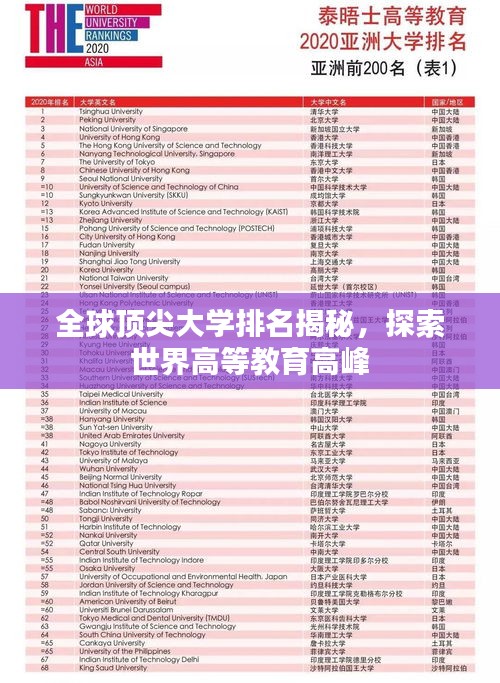 随着全球化的步伐加快,教育领域的国际交流与合作日益频繁,每年的世界大学排名,不仅引起了国内的高度关注,也成为了国际间热议的话题,我们将一起探讨“翻译世界大学排名”,了解全球高等教育的发展现状和趋势。