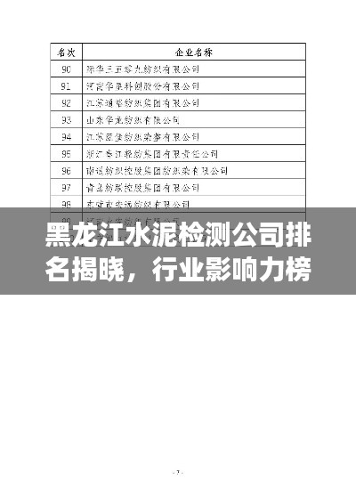 随着建筑行业的蓬勃发展,水泥作为重要的基础建材,其质量直接关系到建筑的安全与寿命,在黑龙江省,众多水泥检测公司应运而生,为水泥行业提供质量保障,本文将探讨黑龙江水泥检测公司的排名及其行业影响力。