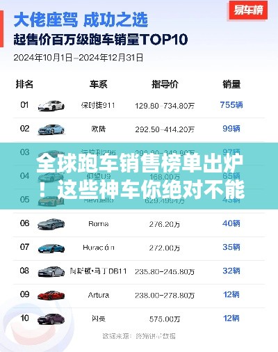 跑车,速度与激情的代名词,一直以来都是车迷们追逐的焦点,全球各地的跑车制造商不断推陈出新,竞争日益激烈,本文将对全球跑车销售排名进行介绍,带您领略一下各大品牌的魅力。