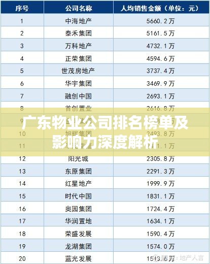 随着城市化进程的加快,物业管理行业逐渐崭露头角,成为城市发展中不可或缺的一环,广东省作为我国经济最发达的地区之一,其物业管理行业发展尤为突出,本文将根据广东省物业公司排名表格,简要介绍几家在行业内颇具影响力的物业公司。