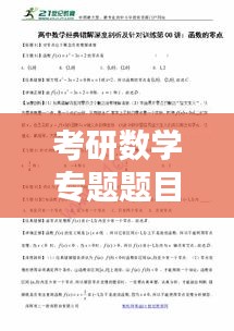 随着考研竞争的日益激烈,数学作为考研的重要科目之一,其难度和深度也在逐年提升,对于考生而言,掌握考研数学专题题目是取得好成绩的关键,本文将围绕“考研数学专题题目”这一主题,深入探讨其重要性、特点、应对策略及实例分析。