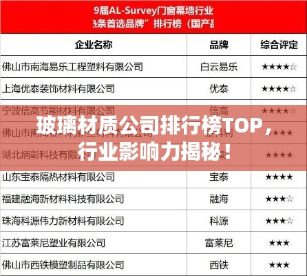 玻璃材质公司作为现代建筑和设计的重要组成部分,其影响力越来越大,排名靠前的玻璃材质公司,如XX公司、YY集团和ZZ公司等,以其卓越的产品质量、精湛的工艺技术和强大的研发能力,赢得了市场的信任和客户的赞誉,这些公司需要不断创新,以适应市场的变化和满足客户的需求,为行业的发展做出更大的贡献。