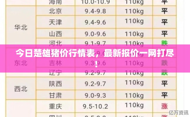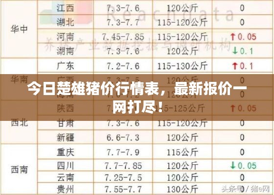 随着人们对食品需求的不断增长,畜牧业的发展也日益繁荣,作为重要的畜产品之一,猪肉的价格变化一直备受关注,本文将介绍今日楚雄最新猪价表,为广大养殖者和消费者提供有价值的参考信息。