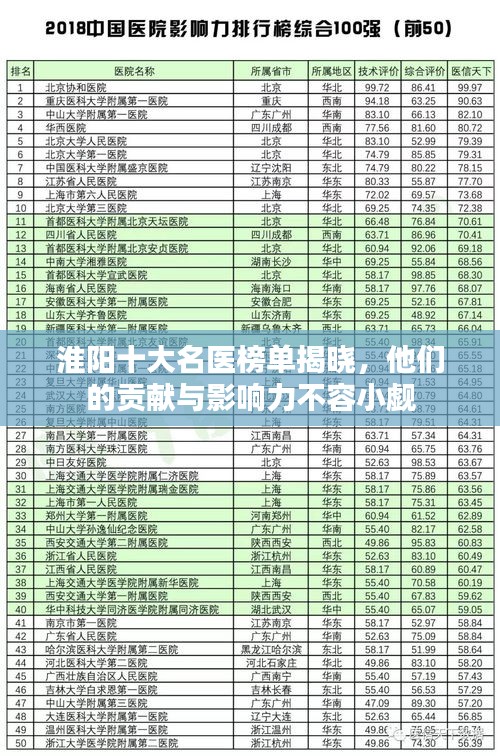 淮阳地区一直以来都是医学领域的繁荣之地,涌现出众多医术高超、医德高尚的名医,本文将为您介绍淮阳名医排名前十名,他们在医疗领域的贡献和影响力,让我们一起了解他们的故事。