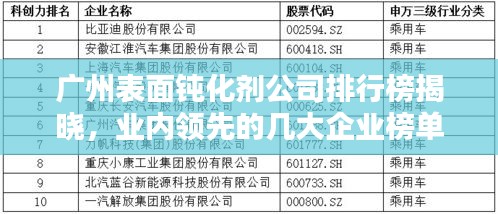 广州,作为中国南方的重要城市,工业发展迅猛,其中表面钝化剂行业亦取得了骄人的成绩,众多表面钝化剂公司在此地扎根,凭借先进的技术和卓越的产品质量赢得了广大客户的信赖,我们将为您揭晓广州表面钝化剂公司的排名情况。