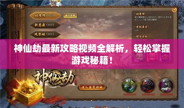 在这个充满奇幻与冒险的游戏世界里,《神仙劫》以其独特的魅力吸引着无数玩家,本文将为您带来关于“神仙劫最新攻略视频大全”的全面介绍,让您轻松掌握游戏攻略,助您在游戏中一臂之力。